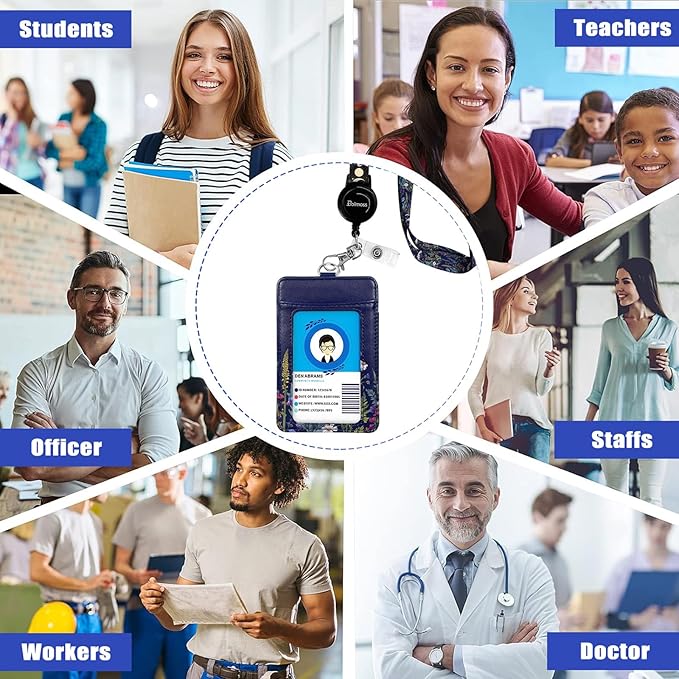 Floral Badge Holders, Vertical PU Leather ID Card Name Bdge Holder with Detachable Neck Lanyard Strap and Retractable Badge Reel Metal Clip Sturdy Buckle for Key Wallet (Wildflower)