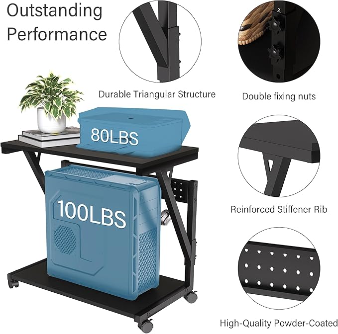 - ๐๐จ๐๐ข๐ฅ๐ข๐ญ๐ฒ ๐๐ง๐ ๐๐ญ๐๐๐ข๐ฅ๐ข๐ญ๐ฒ: The rolling cart equipped with four 360-degree rotating wheels with brakes, the computer tower stand ensures smooth movement on different surfaces while providing stability, even when fully loaded. The design reduces carpet prints, indentations, and makes it easy to clean the floor.