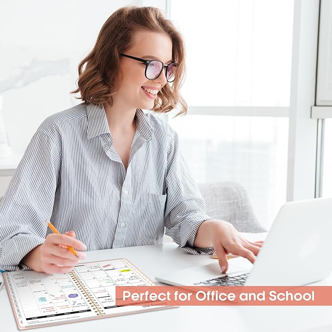 - Functionality Perfected, Style Exemplified: Revel in the embrace of 6.3" x 8.5" 2025 planner weekly and monthly, thick paper that exudes quality, and a hardcover cover adapting seamlessly to your lifestyle. Let monthly tabs and strong twin-wire binding elevate your planning journey, while the elastic band adds convenience for easy use. Contacts, a 2025 Yearly Overview, Reference Calendars, and 2025 Holidays enrich your journey.