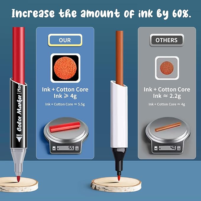 - 😊【Tips:】In order to prevent the ink bleeding in use, the tip should not stay on the paper for a long time. All markers will be bleeding when it drawning on regular paper, there are two solutions: First, place on the back with an extra paper so that it doesn't bleed to the next layer. Or useing a professional marker paper for drawning.