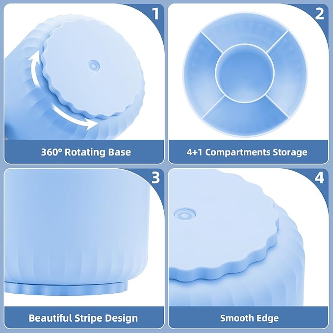 - 【Space-Saving】: The special round design of the organizer was designed to make items easy to reach, even when stored on upper shelves; Divided into 5 compartments, this spinning container makes it easy to separate and store a wide variety of items; Use this convenient storage to keep children's crafting items all in one place; Great for school supplies, Perfect for home or commercial workspaces