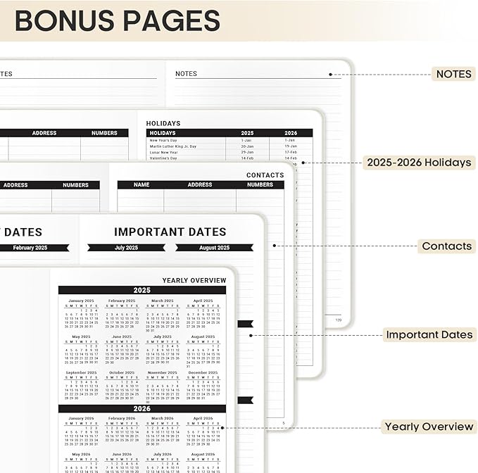 - Essential Extras Included: The 2025 planner includes a handy list of holidays, important dates, reference calendars for 2025, contact pages, and extra notes pages. It’s the perfect choice for anyone looking to stay organized throughout the year.
