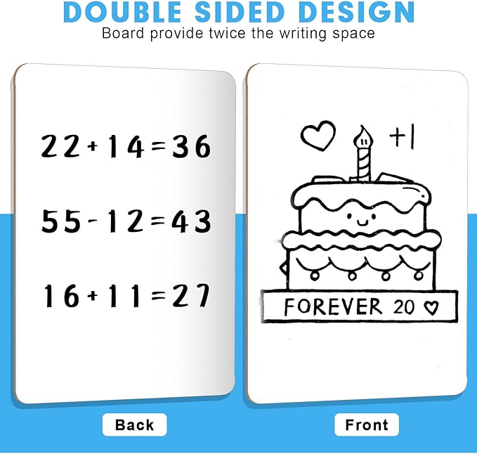 - Smooth Surfaces and Double Sides: The double-sided dry erase boards are smooth. Each board can be used on both sides, giving student a lot of space to write. It can be used as a subject in mathematics, experiments and dictation, etc