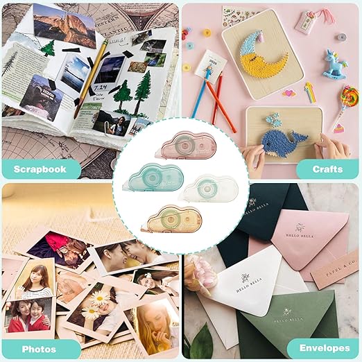 4 Pack Double Sided Tape Roller for Crafts,Adhesive Glue Runner for Scrapbooking,Journaling Home School Office Supplies,Scrapbook Tape,0.23IN x 39FT