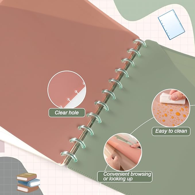 - Discbound pocket dividers: The large discbound notebook dividers with pockets offer ample storage space for displaying and quickly accessing your schedules, business cards, or stickers. The angled pocket design allows for quick access and clear viewing, providing extra space to securely store numerous sheets, notes, or other materials without the need for punching holes, preventing documents from falling out or getting wet.