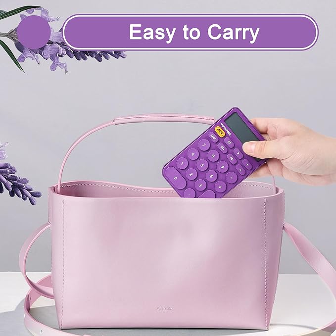- BIG DISPLAY: Large button, candy color. Large LCD screen, 12-digit display, vertical back, 15-degree angle for easy-to-read calculator. One LR44 battery is included in the package
