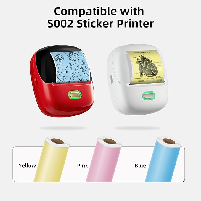 - Three Colors: Includes three rolls of self-adhesive thermal paper in Yellow, Pink, and Blue, each measuring 2.24 inches (57 mm) in width and 9.84 feet (3 meters) in length; Perfect for a variety of printing needs, from study notes to DIY projects
