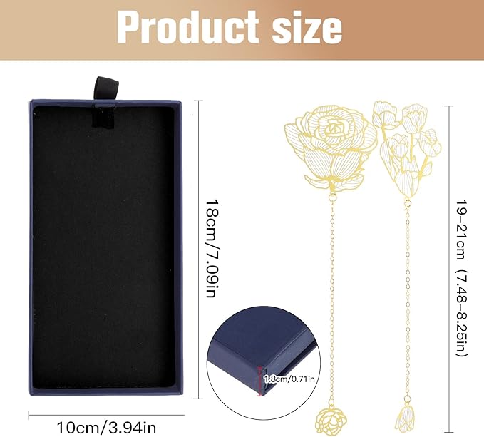- Size: The size of the bookmark gift box is 18*10*1.8cm/7.08*3.93*0.71Inch, and the size of each bookmark is 6inch long. The appropriate size can meet your daily use.