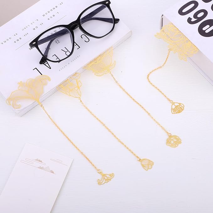 - Unique Design:our metal bookmarks is elegant and beautiful,which has 4 style,each exquisite bookmark is equipped with a unigue chain,meet your needs for different styles.