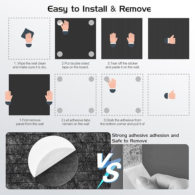 - 【Eco-Friendly and Safe】: The Felt boards are odorless and hypoallergenic, made from environmentally friendly and recyclable materials. The strong acrylic adhesive ensures that the felt boards stay securely on the wall while allowing for easy removal without leaving any residue or damaging your wall paint, providing you with peace of mind.