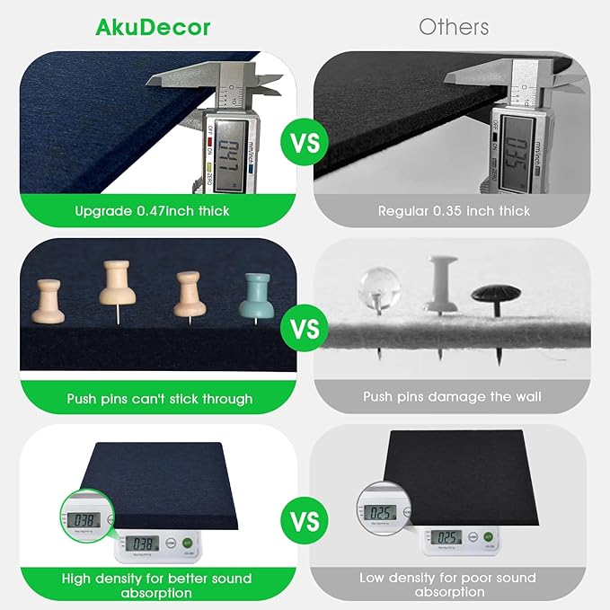 - 【Thickened Cork Boards】Our cork board alternatives have higher thickness (25% thicker) and density (35% denser) than traditional cork boards, which means better durability and sound absorption. It prevents push pins from sticking through the felt board and damaging the wall.