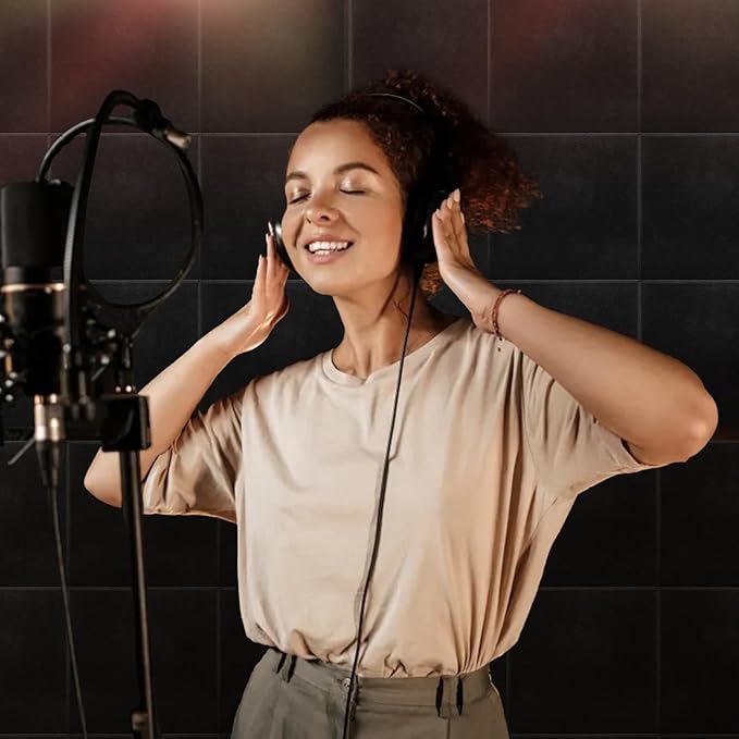 YOUEON Black Felt Bulletin Board for Wall 48" x 36", 12 Pack Black Cork Board Alternative with Pushpins & Self Adhesive Stickers, Soundproof Wall Tiles, Pin Boards for Home Office School