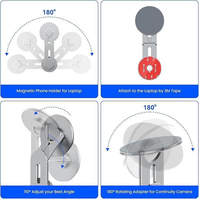 - Light and Compact: Magnetic phone holder for Laptop is made of lightweight aluminum alloy material. It has a small volume that saving space and making it easy to carry anywhere. It is the perfect choice for travel, meetings, analysis, business trips and so on.
