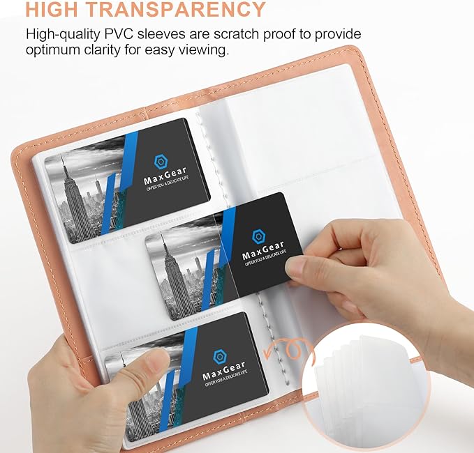 - Durable Materials: Our business card organizer is made of water-resistant and wear-resistant PU, reinforced with sealed edges and durable PVC business card sleeves.