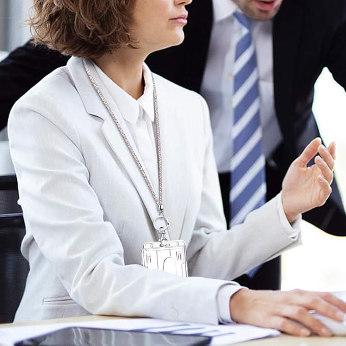 - Crystal Lanyard with Badge Holder. Our id lanyard is made of high-quality crystal beads, with 1 retractable badge reel clip and 1 clear id card holder can hold your keys & id card well, really sparkling and stylish.