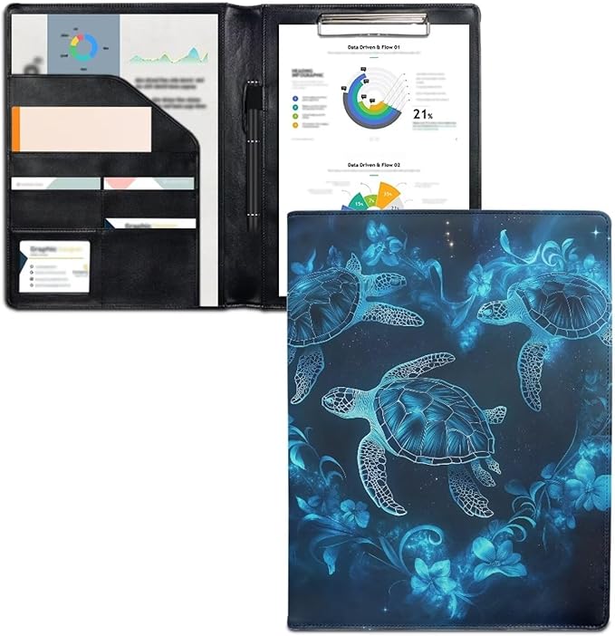 Cozeyat Heart Shape Sea Turtle Padfolio Portfolio Leather Binder for Women, Interview Legal Document Organizer Business Card Holder Letter Sized Writing Pad File Folders