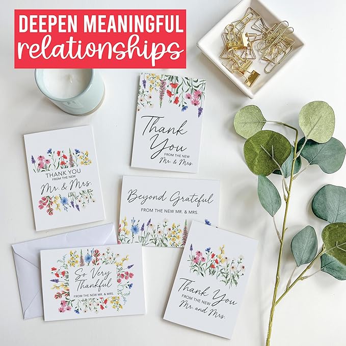 - Show How Much Their Presence Meant; This thank you notes cards set is an easy way to put a smile on anyone's face; Use these as thank you cards from mr and mrs, thank you cards with envelopes bulk thank you notes with envelopes set, thank you note wedding cards