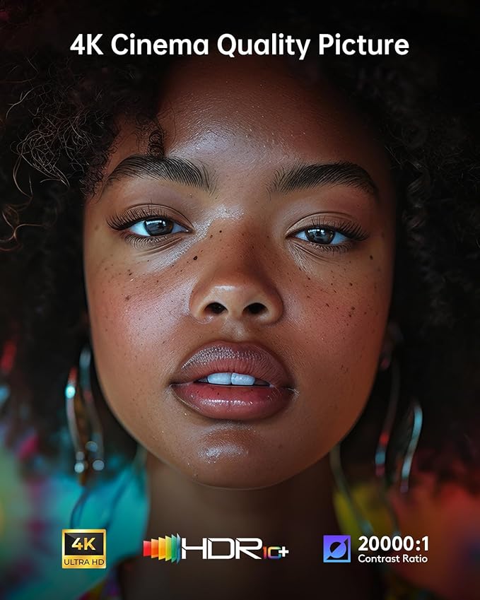 - Google TV with Licensed Netflix and more apps, 4K Supproted, 1920*1080 Resolution, 350ANSI Lumens, HDR 10+, 20,000:1 Contrast Ratio, 2.4G+5G Dual Band WiFi, Two-Way Bluetooth 5.2, HiFi Speaker Support Dolby Audio, Support Google Phone Mirror Screen & Google Cast & Airplay, Up to 200" Screen Display, 50%-100% Zoom, Low Noise with Cooling System