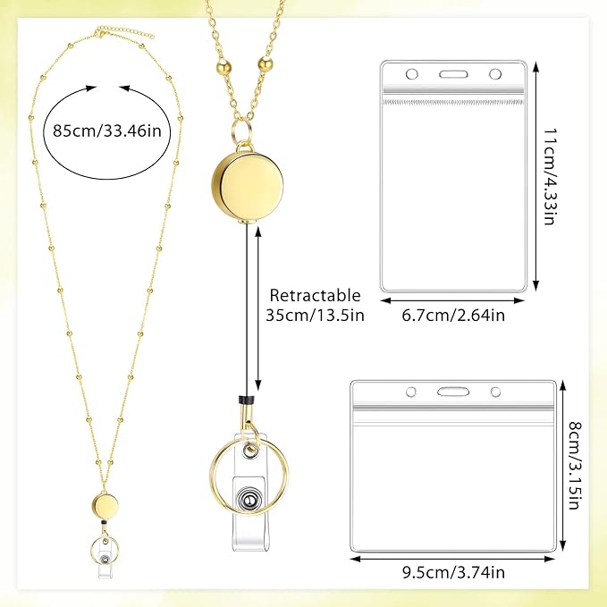 - 【Value Combination】3 Pcs beaded badge lanyards, three colors of gold, silver, pink; 3 pcs retractable reel clip; 6 pcs waterproof badge holders, horizontal and vertical two styles, easily meet your different needs