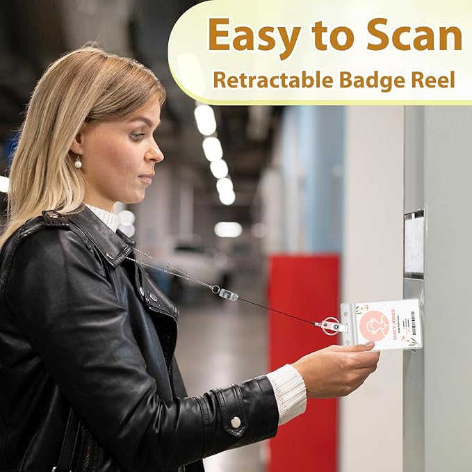 - 【Adjustable】Work lanyards are 33.5 inches long, and the badge reel can be stretched up to 13.5 inches so you can easily scan your ID or card without getting close to the scanner