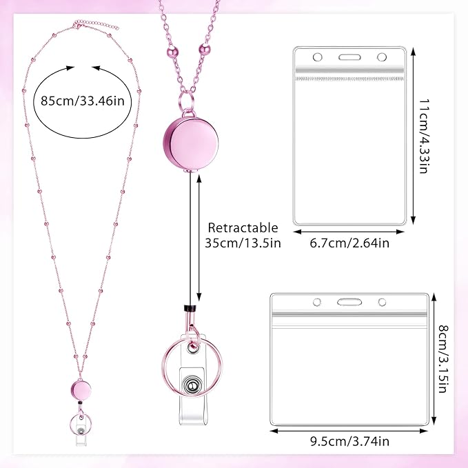 - 【Value Combination】3 Pcs beaded badge lanyards, three colors of gold, pink, purple; 3 pcs retractable reel clip; 6 pcs waterproof badge holders, horizontal and vertical two styles, easily meet your different needs