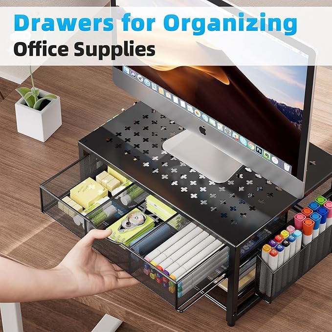 • 【Upgrade Printer Stand】This desk stand features a metal frame, 1 drawer organizer,1 paper letter tray, and 2 hanging pen holders making the stand an ideal choice for managing a desktop. Multifunction helps you not only save printer space but also manage the desk gadgets and stationery clean and tidy.