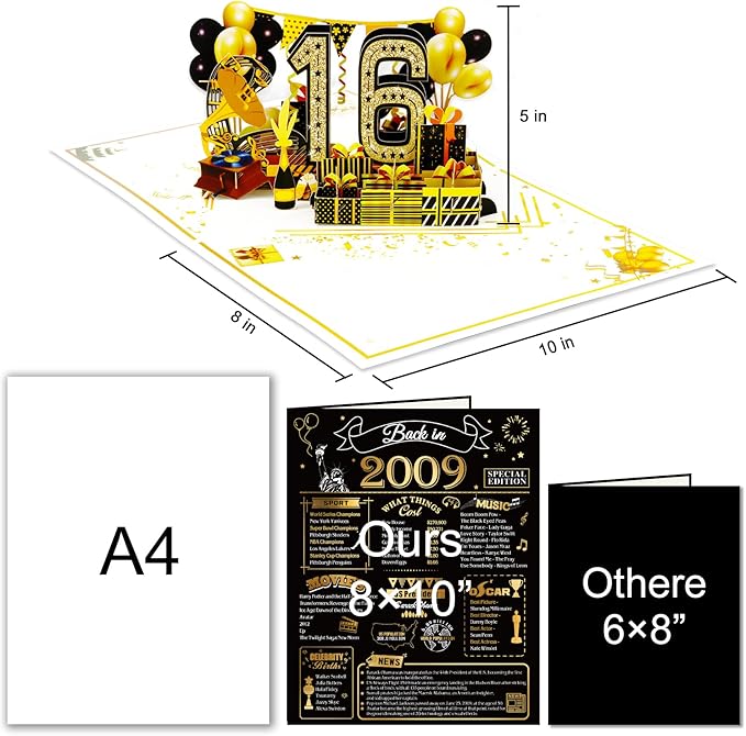 16th Birthday Card for Girls Boys, 3D Pop Up 16th Birthday Gifts Cards, Happy 16 Birthdays Decorations for 16 Year Old Son Daughter, Funny Back In 2009