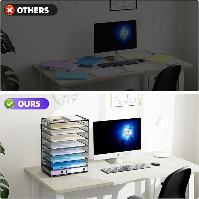 - 【PREMIUM QUALITY】The mesh desktop file organizer is made of lightweight durable metal mesh and reinforced with a solid steel frame that makes it have long-lasting strength and reliable performance.