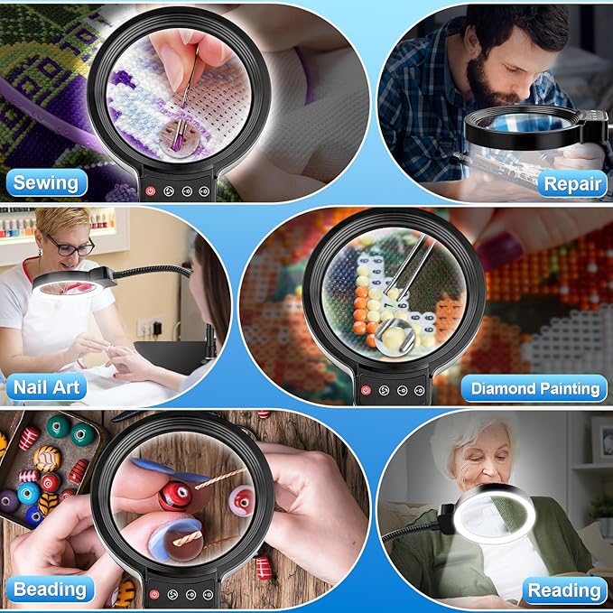 - GREAT CHOICE FOR GIFT GIVING: This practical and thoughtful gift is a good choice for seniors who need vision support, such as those with low vision or macular degeneration. It is also perfect for supporting personal handcraft hobbies, jewellery identification, embroidery, sewing, hand painting, diamond painting, small parts repair, etc., allowing the user to free both hands and eyes.