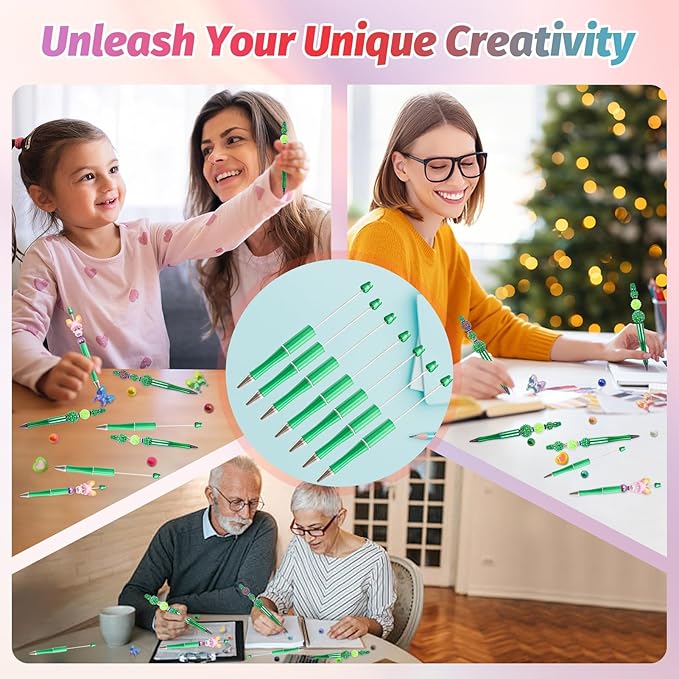 - Beadable Pens Bulk: The beaded pen bulk contains green pen shell colors and matching black ink refills, sufficient quantity and a variety of bright colors can meet your daily replacement needs, convenient to carry, diy pens show personality