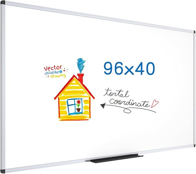 - Smooth Writing and Easy to Wipe: Large Magnetic whiteboard, overall size: 96" x 40" ( frame included); writing surface size: 94" x 38". Smooth & durable magnetic writing surface, easily dry wipe with all dry-erase markers. Give you a very smooth writing experience