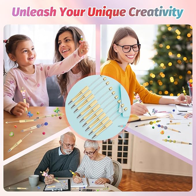 - Beadable Pens Bulk: The beaded pen bulk contains golden pen shell colors and matching black ink refills, sufficient quantity and a variety of bright colors can meet your daily replacement needs, convenient to carry, diy pens show personality