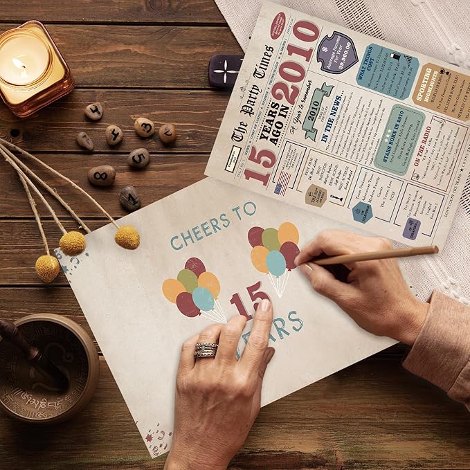 15th Birthday Card, 15 Year Old Birthday Gift for Daughter Son, Retro 15th Birthday Decorations for Boys Girls