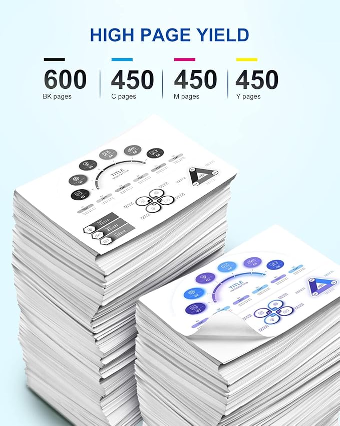 - High Page Yield: Up to 600 pages per 212XL Black ink cartridge, 450 pages per 212XL Color (Cyan, Magenta, Yellow) ink cartridge at 5% coverage of A4 paper, making it an excellent choice for users who frequently print colorful graphics