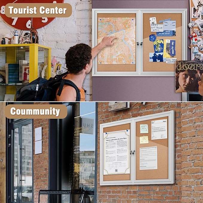 - 🌟✔【Secure Enclosed Bulletin Board】: This lockable bulletin board ensures the safety of your announcements and guarantees that posted items can only be removed by authorized individuals. Suitable for push pins, thumb tacks, or map pins, it's perfect for displaying notes, messages, pictures, memos, calendars, menus, reminders, and more. Ideal for home, office, or business environments.