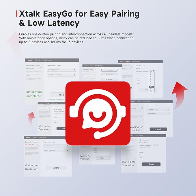 - 【Play Like A Pro】SYNCO Xtalk XMax5 builds on the stable transmission of the XPro.communication range up to 500 meters;with unique one-click Signal Boost enhances signal trans mission distance and penetration.The new dual-ear cup design effectively isolates external noise,Equipped with an AI noise-cancellation chip and dual-microphone noise reduction algorithm, it guarantees smooth and clear long-range communication for teams.Additionally, the XMax features Bluetooth connectivity, allowing for wireless connection to mobile phones for calls and music playback.With SYNCO EasyGo, pairing and setup are simplified, and the low-latency option reduces delay to 80 milli seconds.