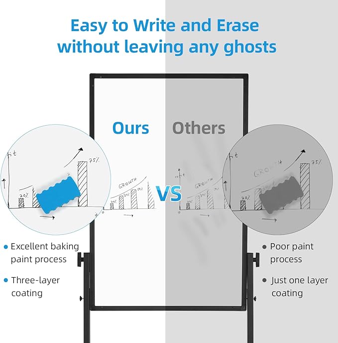 - 【Smooth Writing Surface】The high-end three-layered coated whiteboard easel comes with smooth surface, which brings you a great writing experience, non-glare, easy to wipe without leaving marks. Helps you to perform better in multiple situations