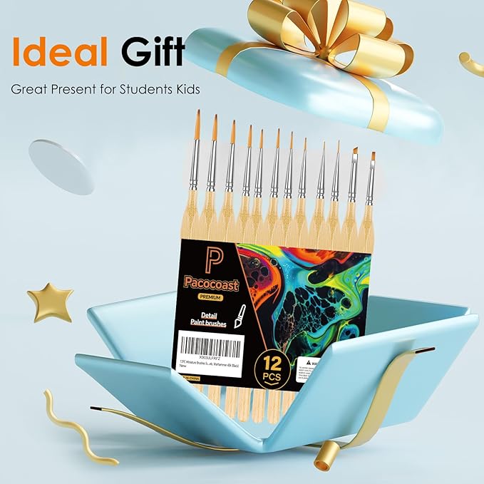 - [All-Purpose Detail Painting Brush]: Pacocoast paintbrush allow you to do fine detailing and art painting, precisely reaching tight little gaps or tiny points. They work well with a variety of paints, including oil, watercolor, acrylic, enamel and gouache. Ideal for a wide range of art projects: painting dnd miniatures figures, Warhammer 40k, Army Painter, miniature painting kit, games workshop, arts and craft, leather, rock, face painting, ceramic models and paint by numbers for adults.