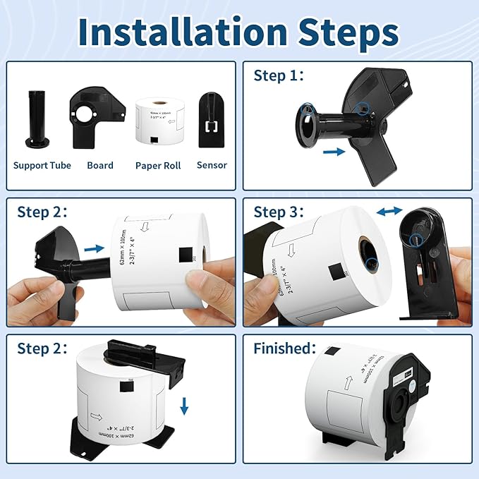 - Large Pack, High Volume: 12 rolls with 300 labels per roll, providing a total of 3600 labels. Includes 1 reusable Frame for easy loading and unloading, perfect for high-volume shipping and labeling.(62mm x 100mm)2-3/7" x 3.9"
