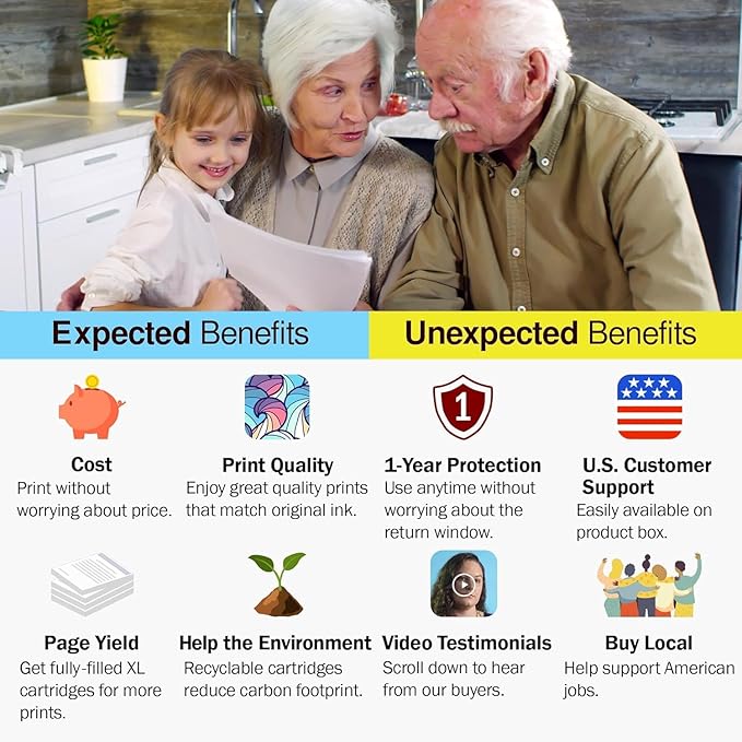 - GET RELIABLE, QUALITY PRINTS – AS GOOD AS ORIGINAL INK. Get your ink from a US-based, accountable company that can be reached easily. Our remanufactured ink cartridges are tested to ensure consistent, quality prints that match the image/text seen on one's printer both at the component level and with print tests. All cartridges are tested both at manufacturing, and again at our FL warehouse. This is done to ensure our ink perfectly matches your printing needs- with vivid colors and sharp text.