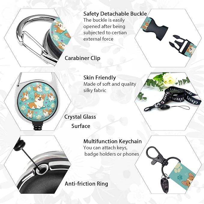 - Special Design: It's time to throw away the dull badge holders and badge reels. Lanyard with id holder is printed with patterns about cute corgi. If you want to change your tedious life, you can start with this colorful and unique badge holder, which comes with a cute lanyard and a name badge holder
