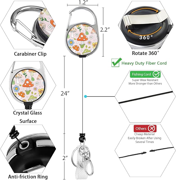 - Special Design: It's time to throw away the dull badge holders and badge reels. Lanyard with id holder is printed with cute patterns about mushroom and flower. If you want to change your tedious life, you can start with this colorful and unique badge holder, which comes with a cute lanyard and a name badge holder