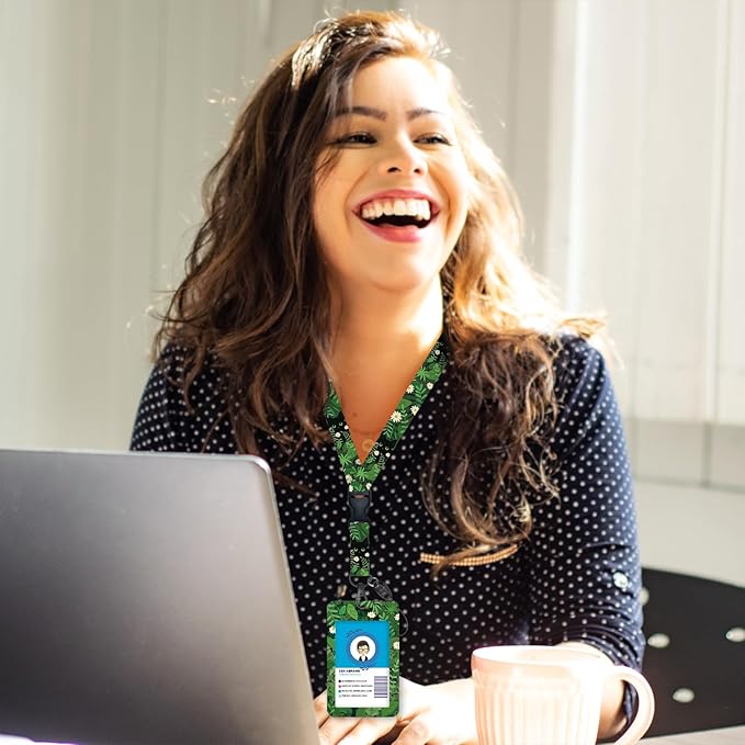 - Special Design: It's time to throw away the dull badge holders and badge reels. Lanyard with id holder is printed with cute patterns about green leaf black cat. If you want to change your tedious life, you can start with this colorful and unique badge holder, which comes with a cute lanyard and a name badge holder