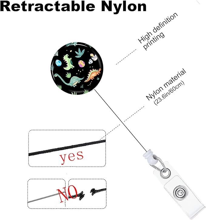 Cute Dinosaur Badge Reels Holder Retractable with ID Clip for Nurse Name Tag Card Nursing for Doctor Teacher Student Employee Office Medical Work