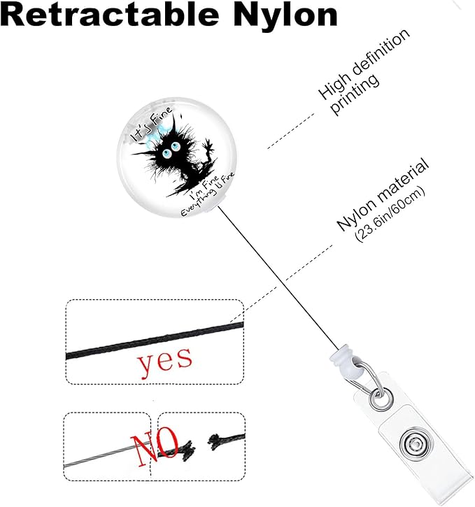 Funny Cute Cat Badge Reels Holder Retractable with ID Clip for Nurse Name Tag Card Nursing for Doctor Teacher Student Employee Office Medical Work