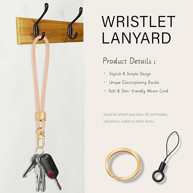 Fishent Keychain Wristlet lanyard, Cute Key Chain Holder, Upgraded Woven Wrist Lanyard for Keys, Wristlet Strap Keychain for Women Men Car Keys ID Badges Card Wallet Phone (Pink Sand)