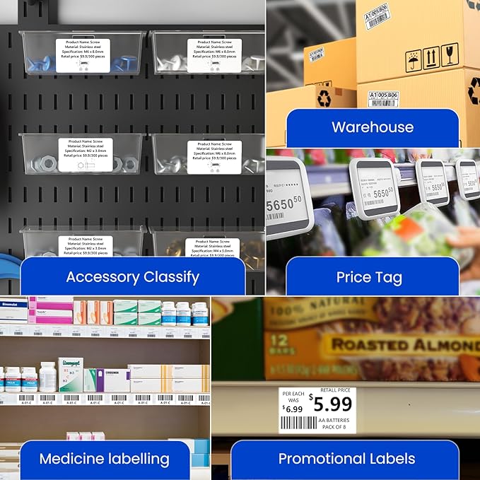 - Wide Application:These compact labels are perfect for use at home, in small businesses, or offices. They are ideal for product labeling, barcode labels, packaging, price tags, food labels, service records, repair labels, prescription labels, gift tags, and more. They efficiently label items while enhancing product appearance and providing important information.
