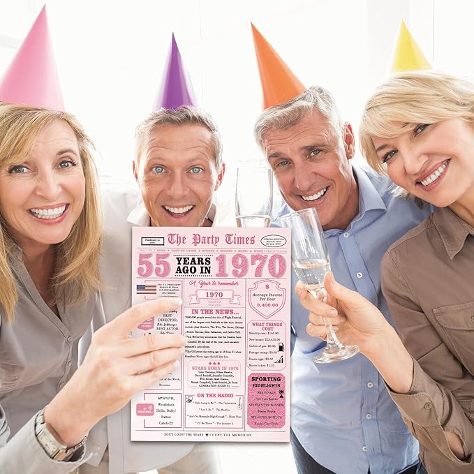 - Unique 55th Birthday Card: This beautifully designed card commemorates a woman's 55-year journey with personalized life stats and a heartfelt message. With a pink glitter theme and eye-catching fonts, this card is elegant, making it an ideal birthday card for women celebrating their 55th birthday. Whether for a wife,mom,sister, or friend, this card offers a memorable and meaningful way to celebrate her milestone birthday.