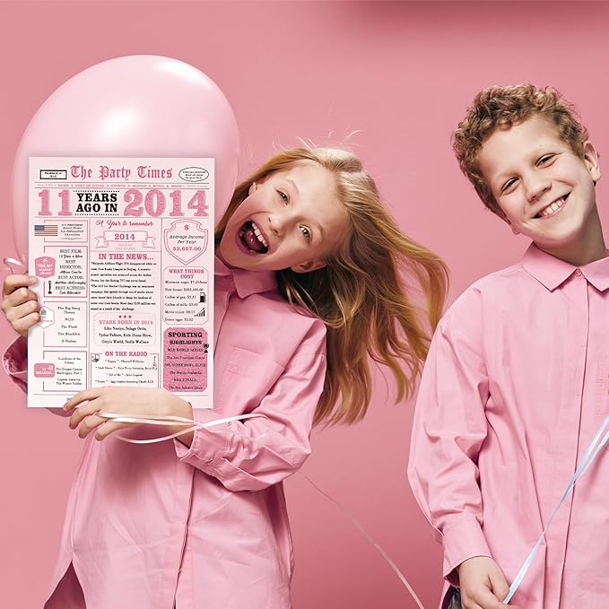 - Best 11th Birthday Card: Celebrate your girl's journey of 132 magical months with this cute newspaper-style card that captures her birth year 2014,Turns 11th birthday into a "Born in 2014" time-travel experience,it's more than a card,it's a love letter to the 4,017 days you've watched her grow into this radiant 11-year-old star. This beautifully designed card is perfect for celebrating a special girl's 11th birthday.