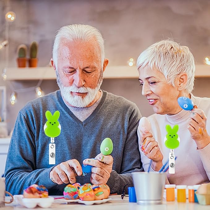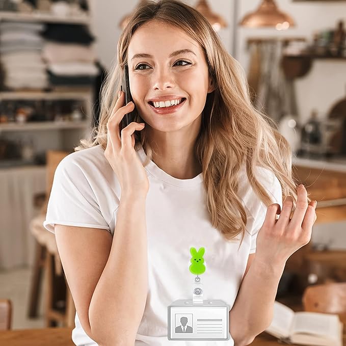 Easter Bunny Badge Reels Retractable ID Name Badge Holder Green Rabbit Cute Badge Reels Acrylic Clips Easter Party Gifts for Nurse Doctor Teacher Student Office Supplies